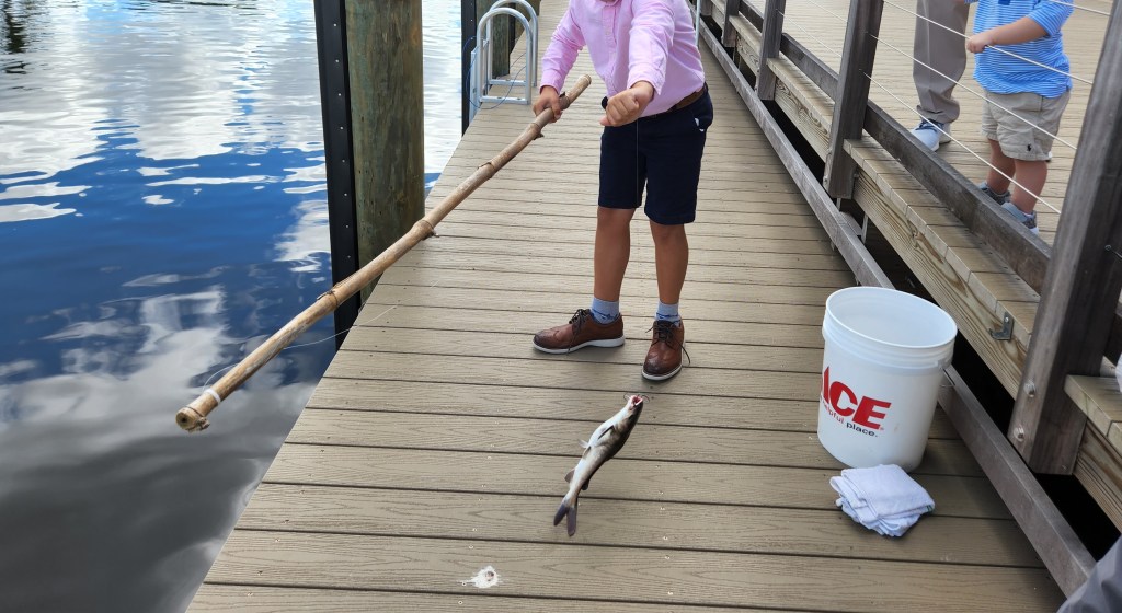 As I watched the activity on the dock yesterday, I realized the gift Father gave to us; our children. The innocents of youth, the wide-eyed wonder as they pulled those fish out of the water. The pure unfiltered excitement as their parents took pictures of their catch. The pride they took in telling adults about their success when they came down to ask, “Have you caught anything?”. Words simply cannot describe the feeling of being in the middle of that activity. There was nothing fancy, just a bucket with some shrimp, several handmade cane poles, beautiful sunshine, and children in their purest form.
