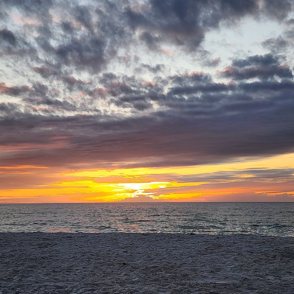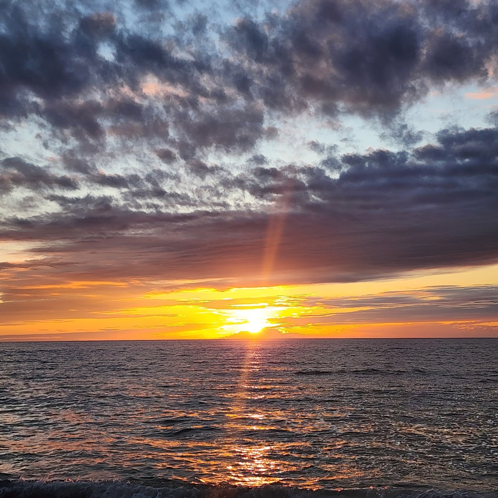We chatted and laughed about goofy things. A small family was doing a photo shoot with a photographer and afterward, the kids jumped around in the water. The laughter was infectious, it reminded us of our kids the first time they saw the beach. Not long after the sun began to make its way down and just as we had hoped it was a gorgeous evening. I’m glad that we went, I can’t help but wonder if satan was poking at us, “It’s cloudy you won’t see a sunset tonight”. Nice try, you lose again satan.