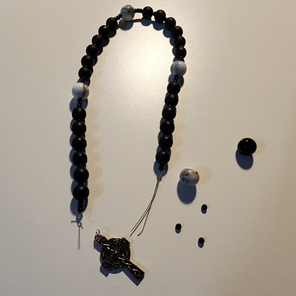 Well, the fun continued Monday morning. As I sat down on our lanai, (bundled up I might add, it was freezing), I held my beaded cross. It’s similar to a rosary I guess you could say, but not made up of the same bead count. I’ve had it for many, many years and I always have it in my hands when I’m spending time with Father. Well, Monday morning I sat down and it literally broke in my hands. As you can imagine the little beads started rolling and I was scrambling just to keep them from rolling off the table. Fortunately, I found all of them and even more fortunate was that the chain stayed mostly intact.