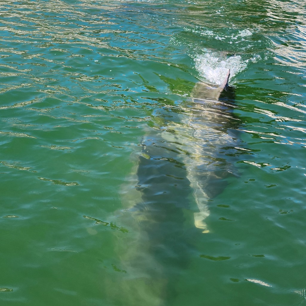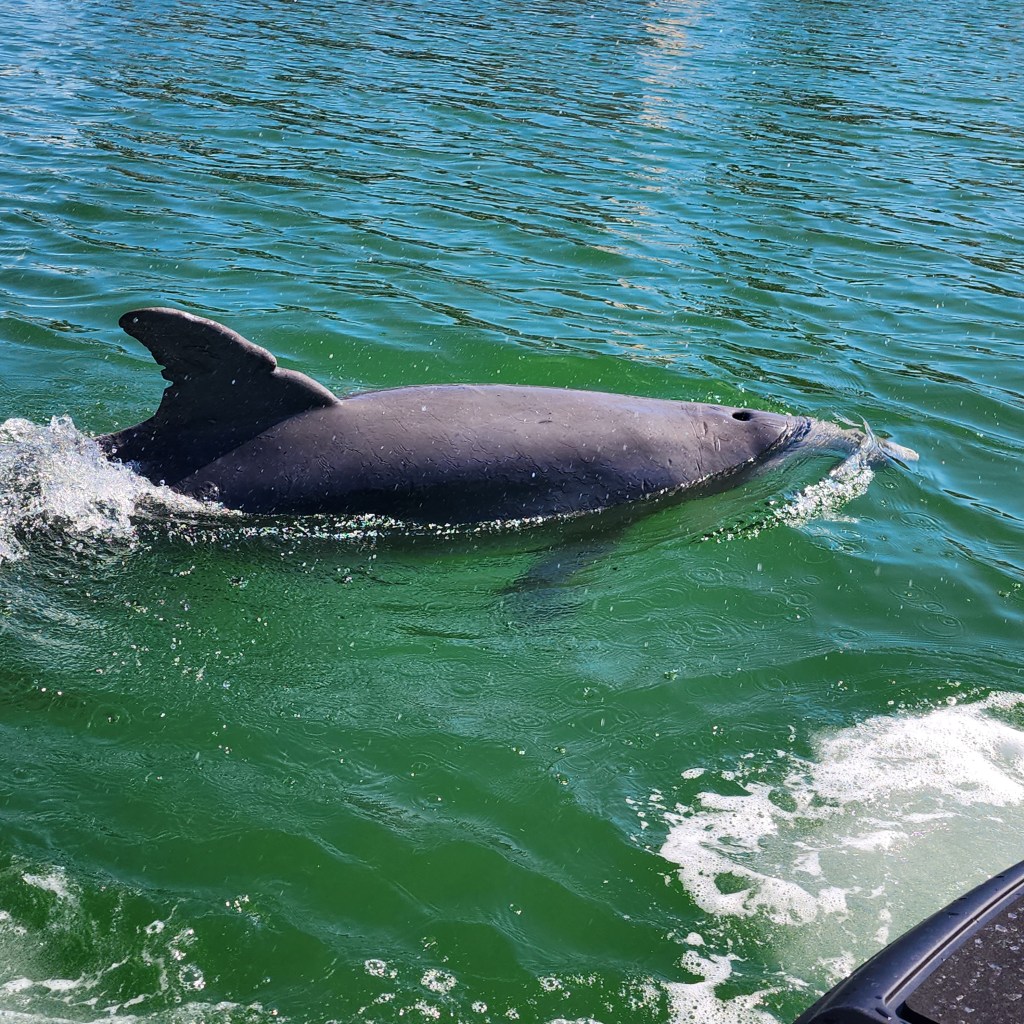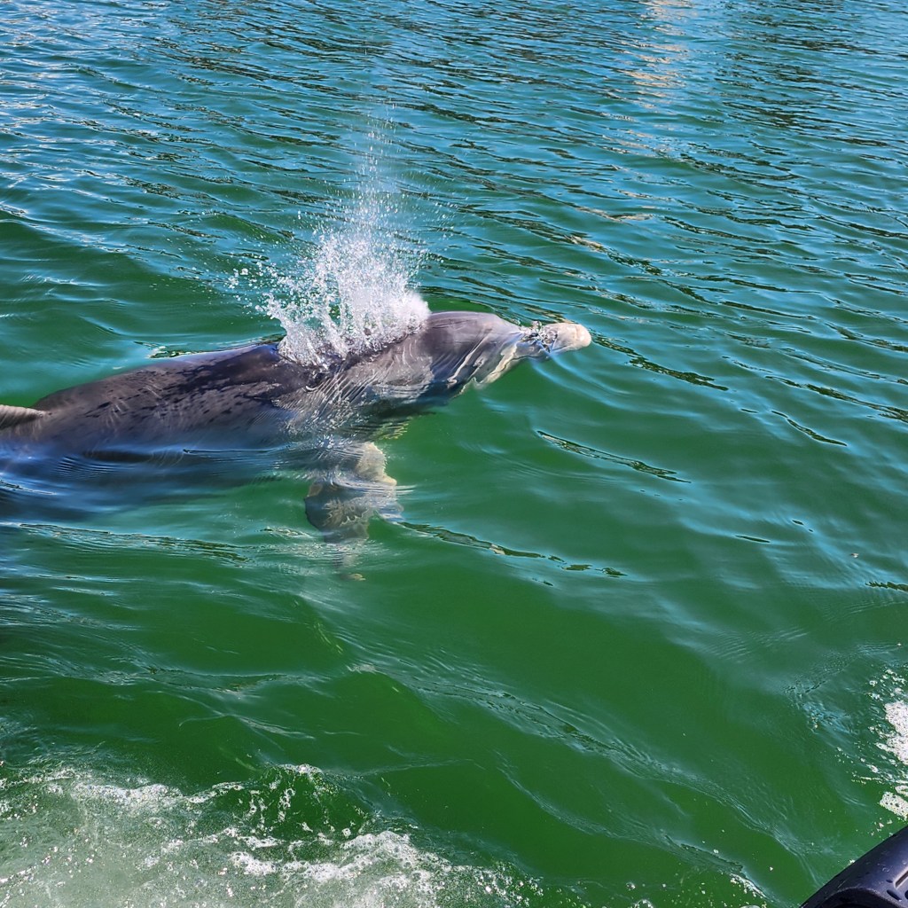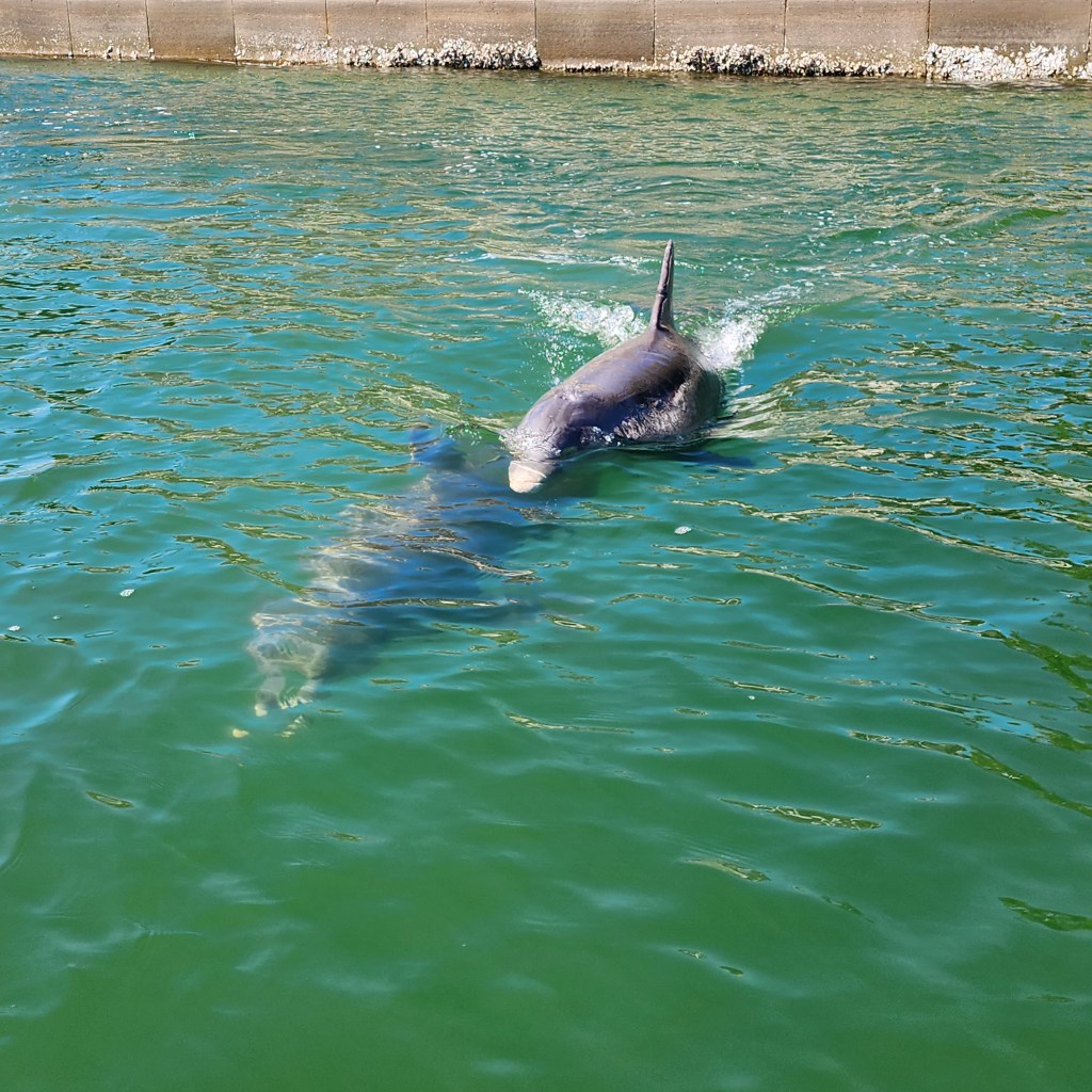 As I rode yesterday, I came upon a pair of dolphins. They were feeding when I first found them. It didn’t take long, though, for them to come and have some fun with me. You see, they are very smart animals; they can tell the difference between a propeller and a non-propeller watercraft. And…they like the bubbles in the water from the jetski ๐ .
